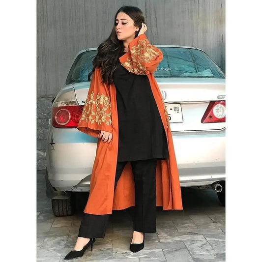 New Black Two Piece With Orange Embroidery Gown