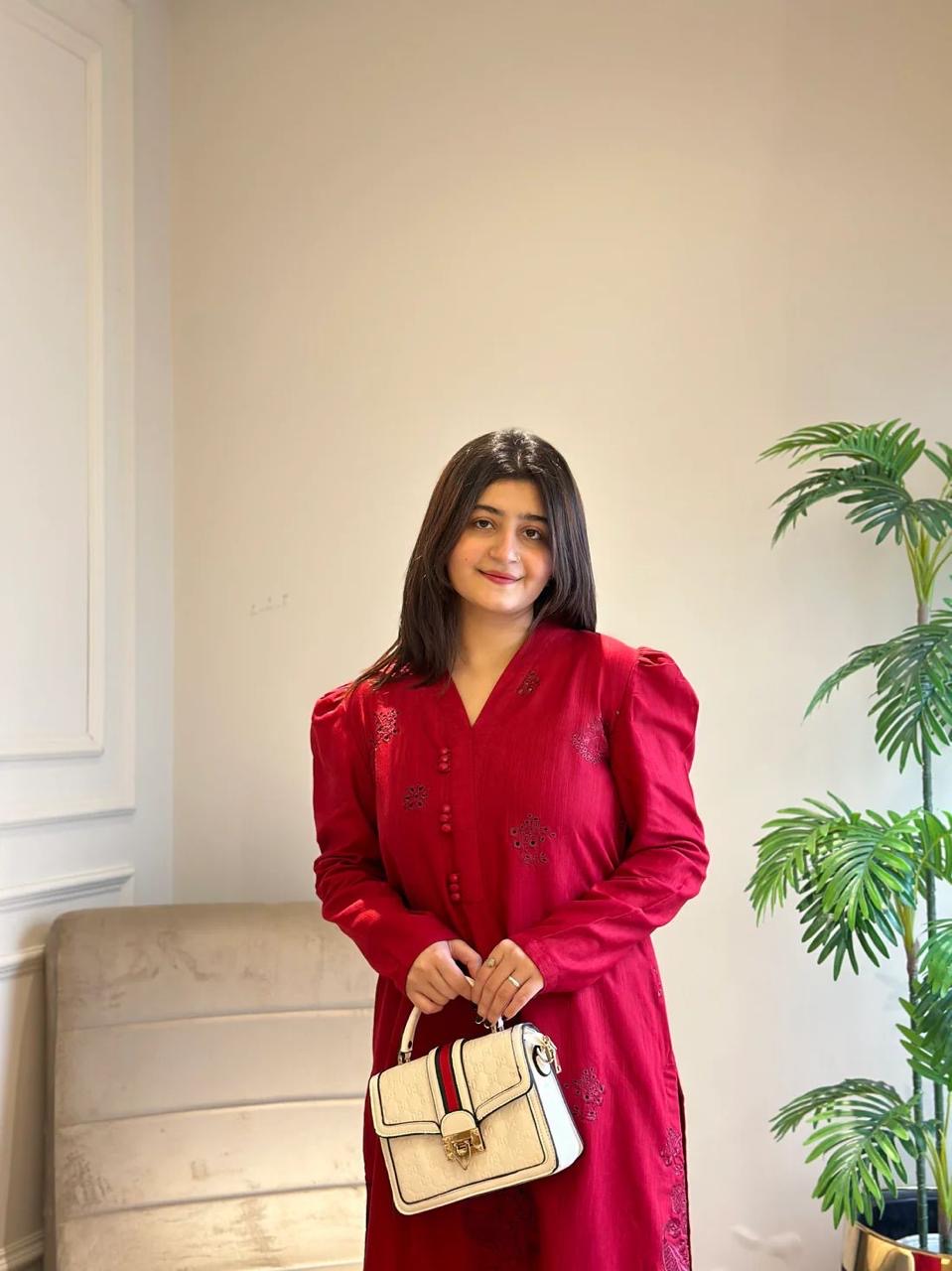 Embrace elegance with the Anaari Two-Piece Set, crafted from premium khaddar fabric and adorned with intricate chikankari embroidery. This fully embroidered ensemble blends tradition and modern style, making it perfect for winter gatherings or casual wear with a touch of sophistication.