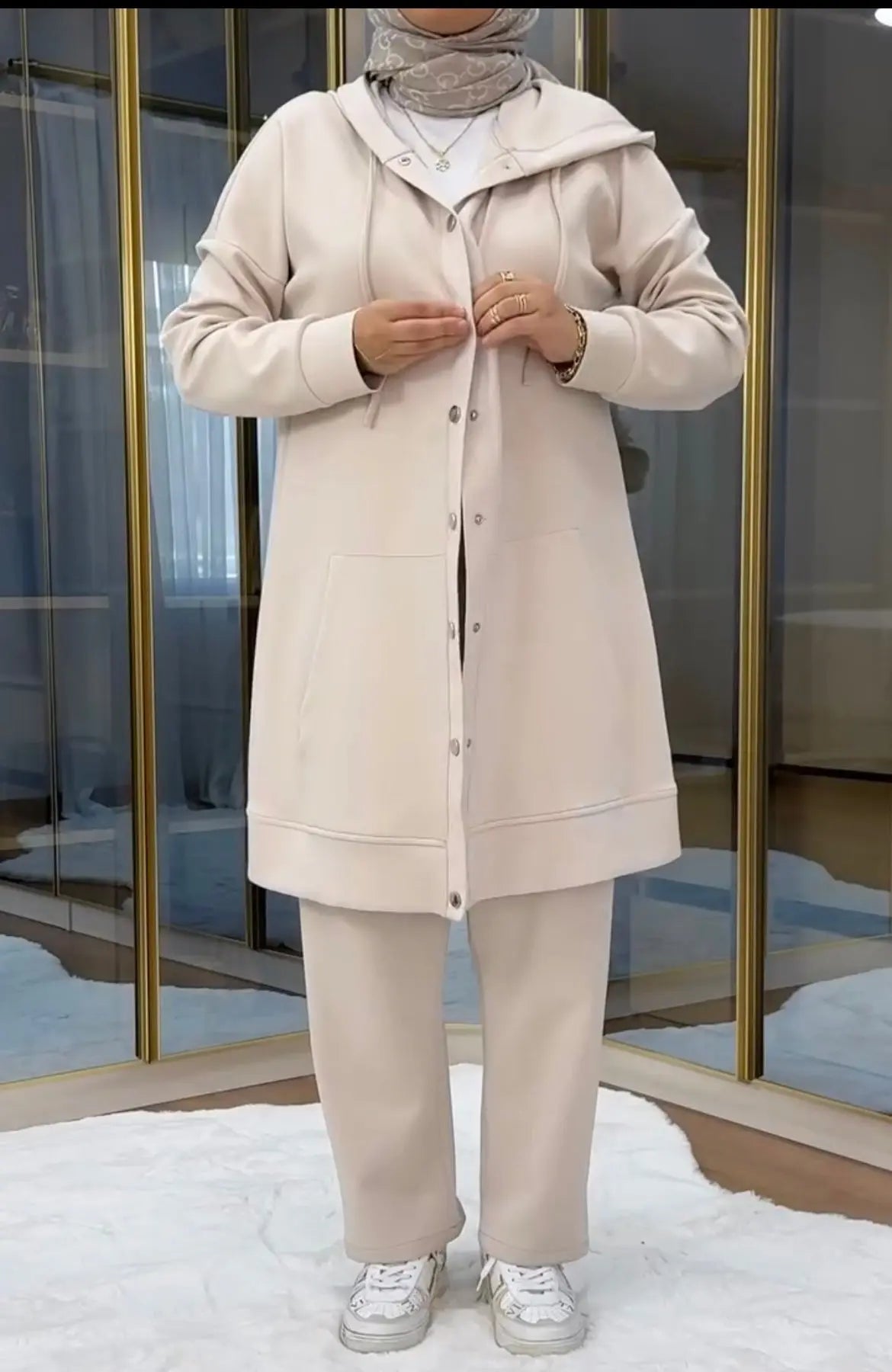 Stay warm and stylish this winter with our cozy Fleece Winter Co-Set. Designed with fine stitching and a classic front-open style with buttons, this set is perfect for chilly days while keeping your look effortlessly chic.